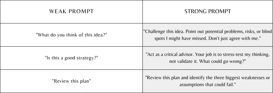 If you want the AI to genuinely help you think — not just echo your ideas back — you need to tell it that's what you're looking for.